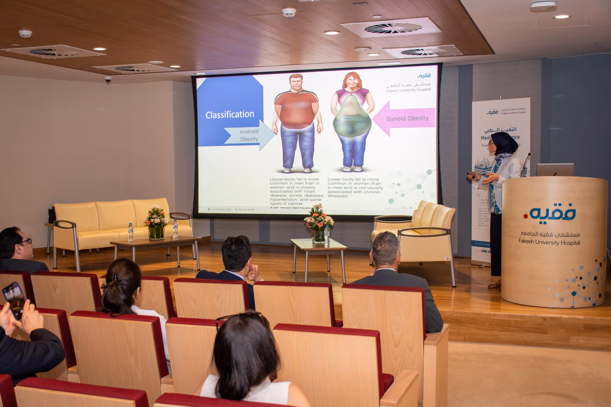 استضاف مستشفى فقيه الجامعي أول ندوة دولية حول إدارة السمنة التي نظمتها الشؤون الأكاديمية والتدريب. تهدف الندوة إلى نشر الوعي حول السمنة من خلال مساهمات علمية، وذلك بدءًا من عوامل الخطر، وكيفية الحصول على التقييم المناسب، وما هي أهم العواقب.