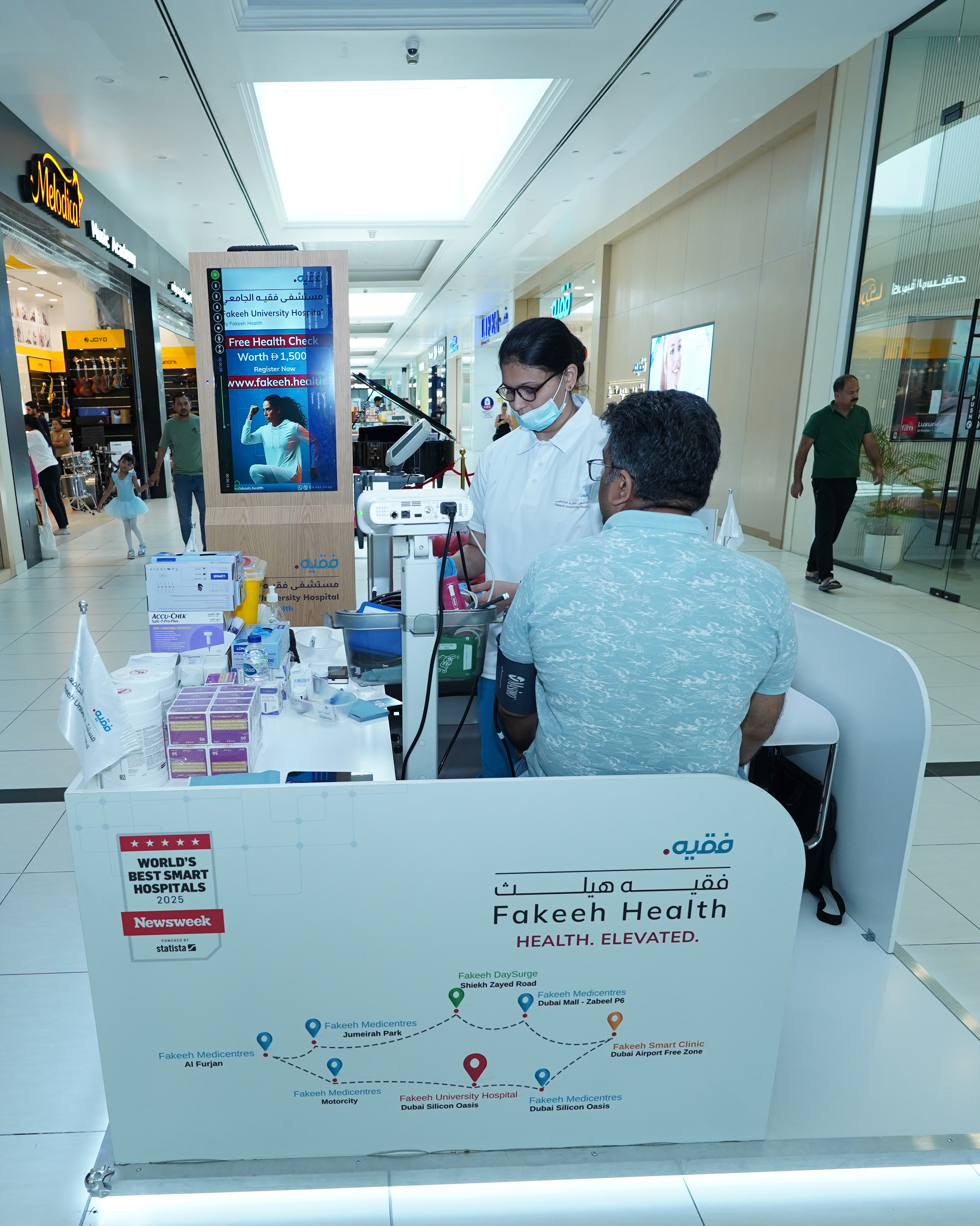 نظّمت فقيه للرعاية الصحية بفخر فعالية فحص صحي مجاني في جناح الفرجان – دبي، مؤكدة التزامها الدائم بتعزيز الرعاية الصحية الوقائية ورفاهية المجتمع في جميع أنحاء دولة الإمارات العربية المتحدة.