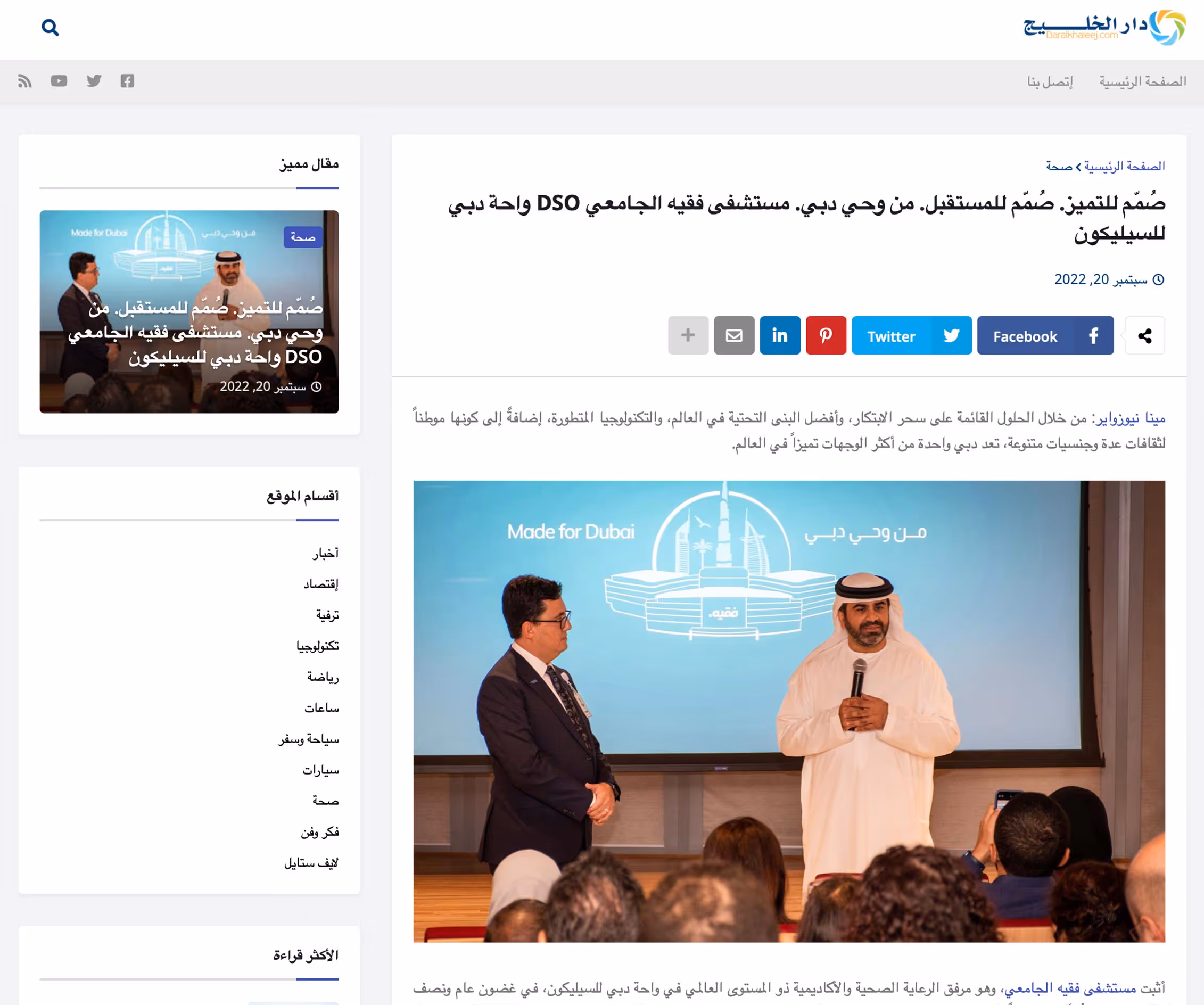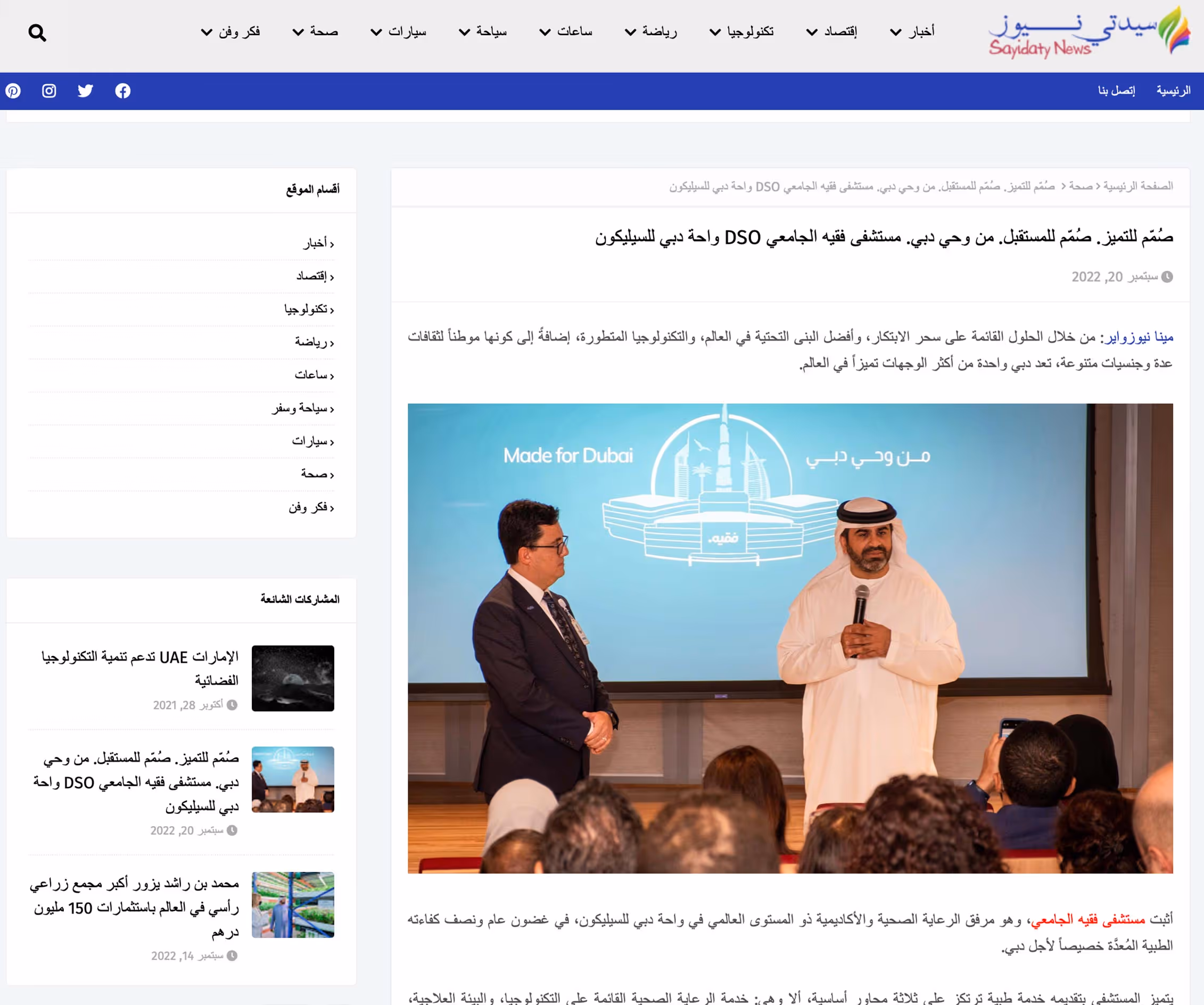 تماماً مثل دبي، أثبت مستشفى فقيه الجامعي، وهو مرفق الرعاية الصحية والأكاديمية ذو المستوى العالمي في واحة دبي للسيليكون، في غضون عام ونصف كفاءته الطبية المُعدَّة خصيصاً لأجل دبي. يتميز مستشفى فقيه الجامعي بتقديمه خدمة طبية ترتكز على ثلاثة محاور أساسية، ألا وهي: خدمة الرعاية الصحية القائمة على التكنولوجيا، والبيئة العلاجية، والنهج الأكاديمي، وهو بذلك يضع معايير جديدة في مجال الرعاية الصحية في دبي والإمارات العربية المتحدة.