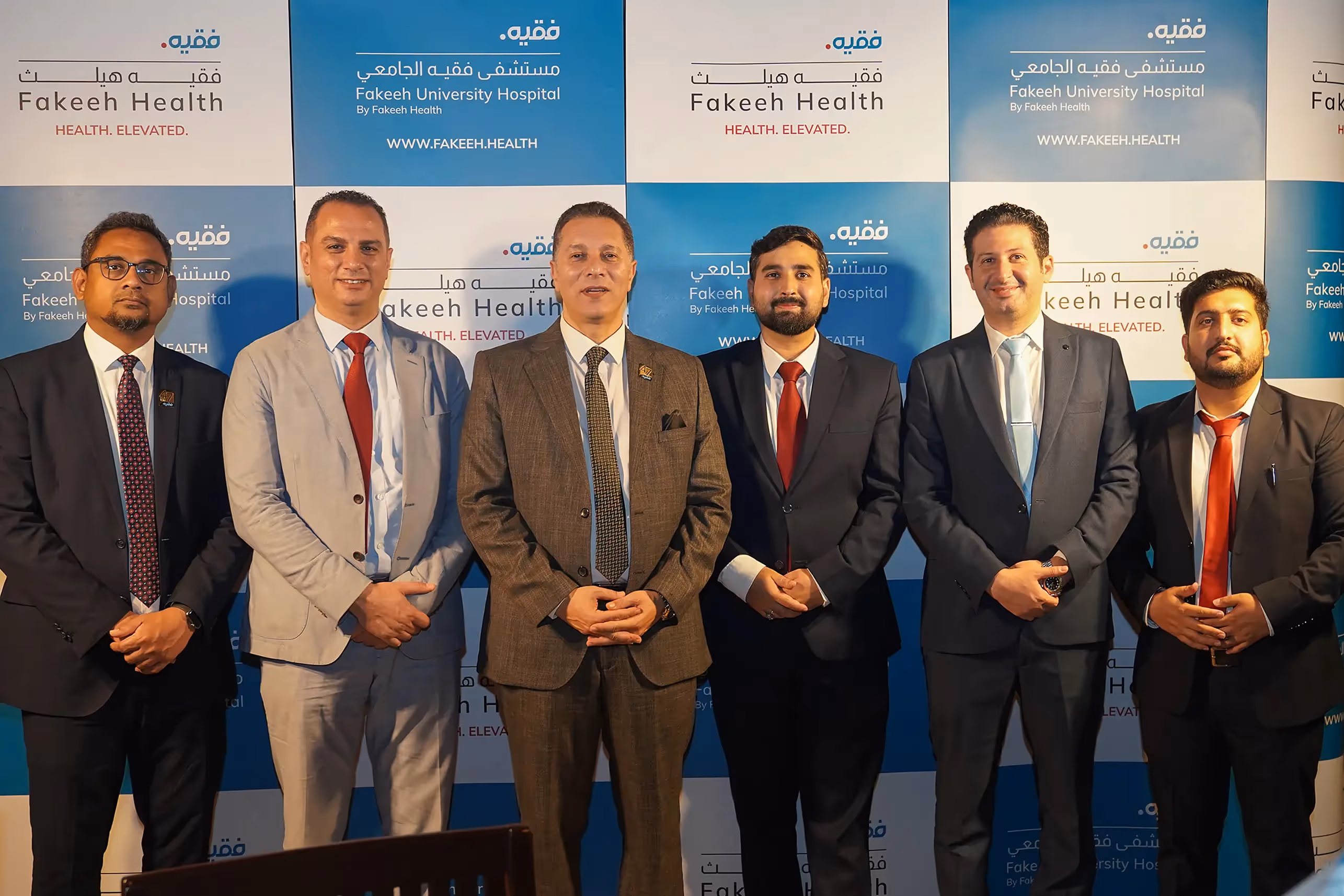 - الدكتور محيمن عبدالغني، الرئيس التنفيذي لمستشفى فقيه، إلى جانب فريق قيادة مستشفى فقيه.