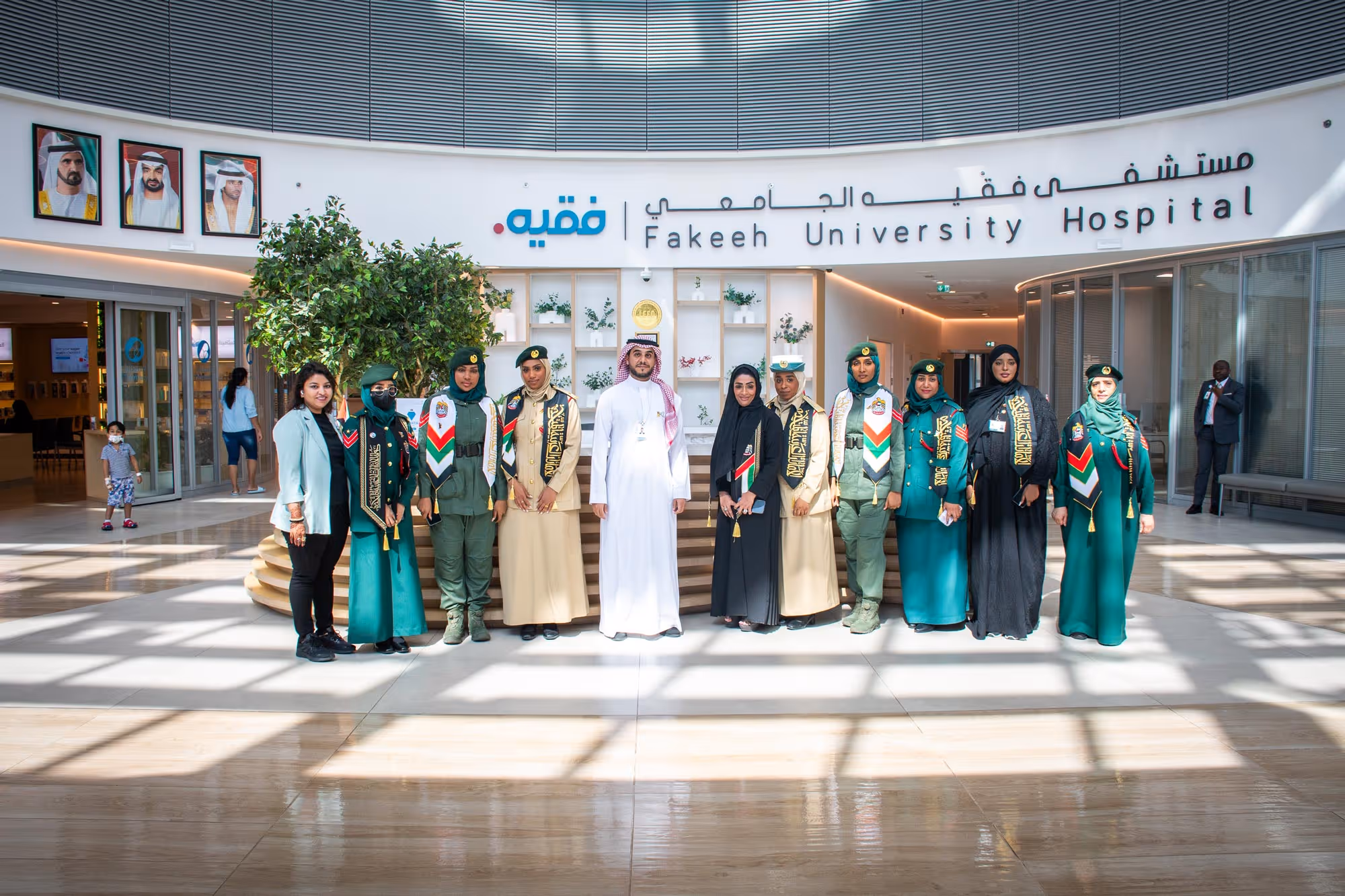 بالتعاون مع شرطة دبي يحتفل مستشفى فقيه الجامعي بيوم العلم الإماراتي من خلال مشاركة الفرحة ونشر الابتسامات.